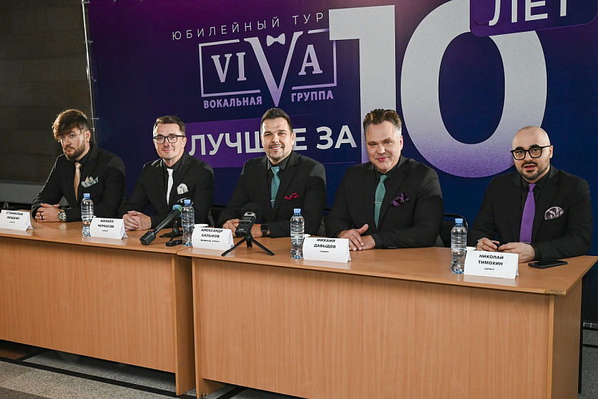 — Днём рождения группы ViVA принято считать не концерт, а выход на телевизионное шоу «Главная сцена» на канале «Россия». Тогда мы появились перед зрителями и стали проводить концерты. У нас была готовая программа, в которой мы исполняли композиции из разных музыкальных жанров, ведь в коллективе собрались люди, ранее работающие с оперным и с классическим материалом. Однако организаторы шоу категорически отвергли привычные нам музыкальные формы и предложили спеть композиции из репертуара Александра Розенбаума и Владимира Кузьмина — «Вечернюю застольную» и «Сибирские морозы». Мы сломали голову: что могут оперные певцы сделать, чтобы это прозвучало достойно и интересно? И вот эти две песни послужили большим стартом для нашей группы, а эфир — большим-большим трамплином. К тому выступлению мы готовились несколько месяцев, оттачивали каждое движение, каждый аккорд, каждую ноту. Вот такой подход с самого первого нашего выступления, наверное, и дал нам трамплин, потому что это видео потом разлетелось по интернету, и нас стали приглашать на гастроли. Так что с первого дня существования группы ViVA мы — гастролирующий коллектив, — рассказал Александр Балыков.